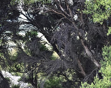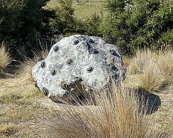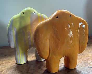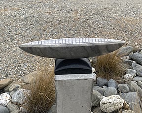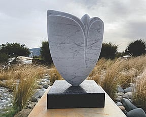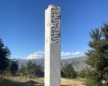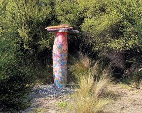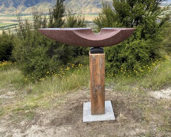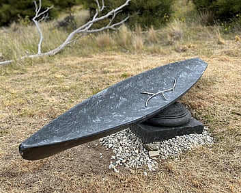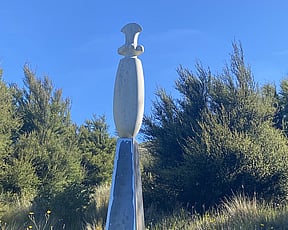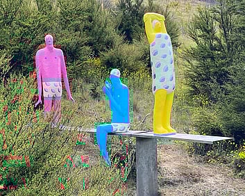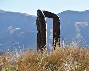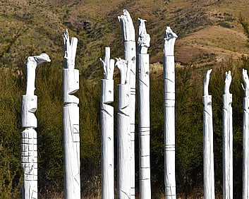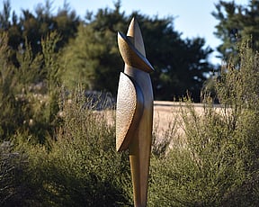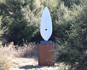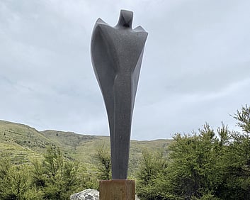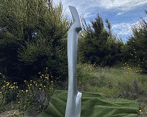 1a. Ta'ahine UaTelly Tuita 2023 (companion pieces, Kanuka, acrylic paint, limestone chip, permanent collection)